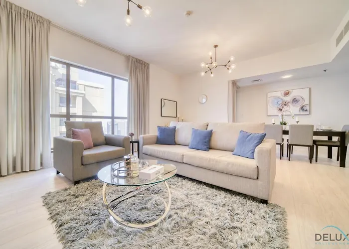 Upscale 2Br At Shams 1 Jbr By Deluxe Holiday Homes с открытым бассейном и патио расположены в районе Пляж и побережье, в 3 км от гольф-клуба Emirates. Эти просторные апартаменты находятся примерно в 10 минутах ходьбы от станции метро метро Jumeirah Lake Towers, в паре минут ходьбы от Променада JBR.